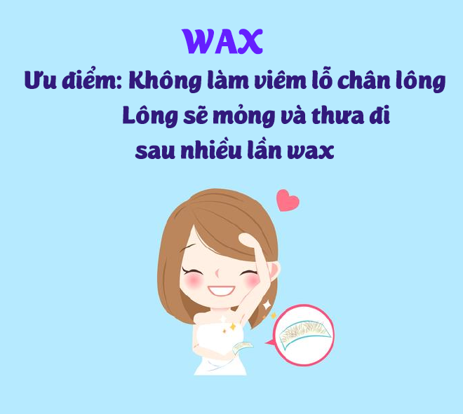 Wax không chỉ giúp lấy đi sạch sẽ lông trên da bạn mà còn kéo theo các tế bào da chết trên bề mặt giúp da láng mịn và sáng hơn trông thấy. Trong thành phần của sáp wax còn có các chất giúp hạn chế sự mọc lại của chân lông. Nhiều chị em nhận xét rằng lông trên những vùng da được wax dần mỏng và thưa đi nhiều so với ban đầu.